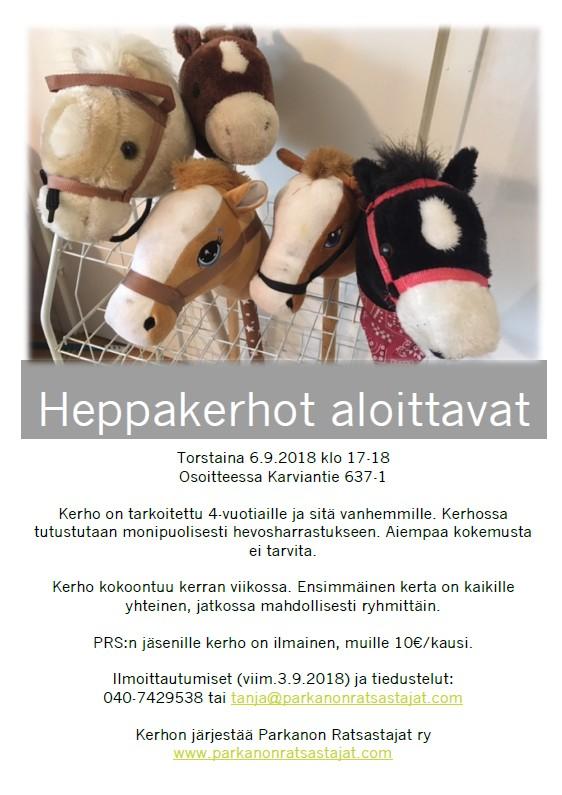 Heppakerho alkaa 6.9.2018 - ilmoittautuminen viim 3.9.