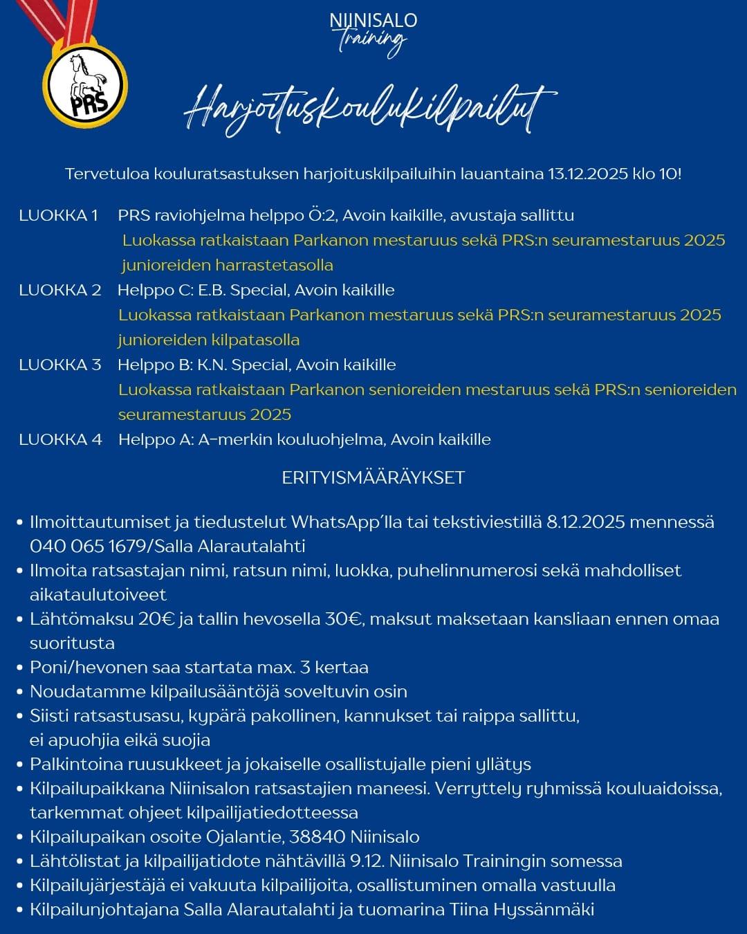 PRS Mestaruus sekä Parkanon Mestaruus ratsastuksessa | Kouluratsastuksen harjoituskilpailut